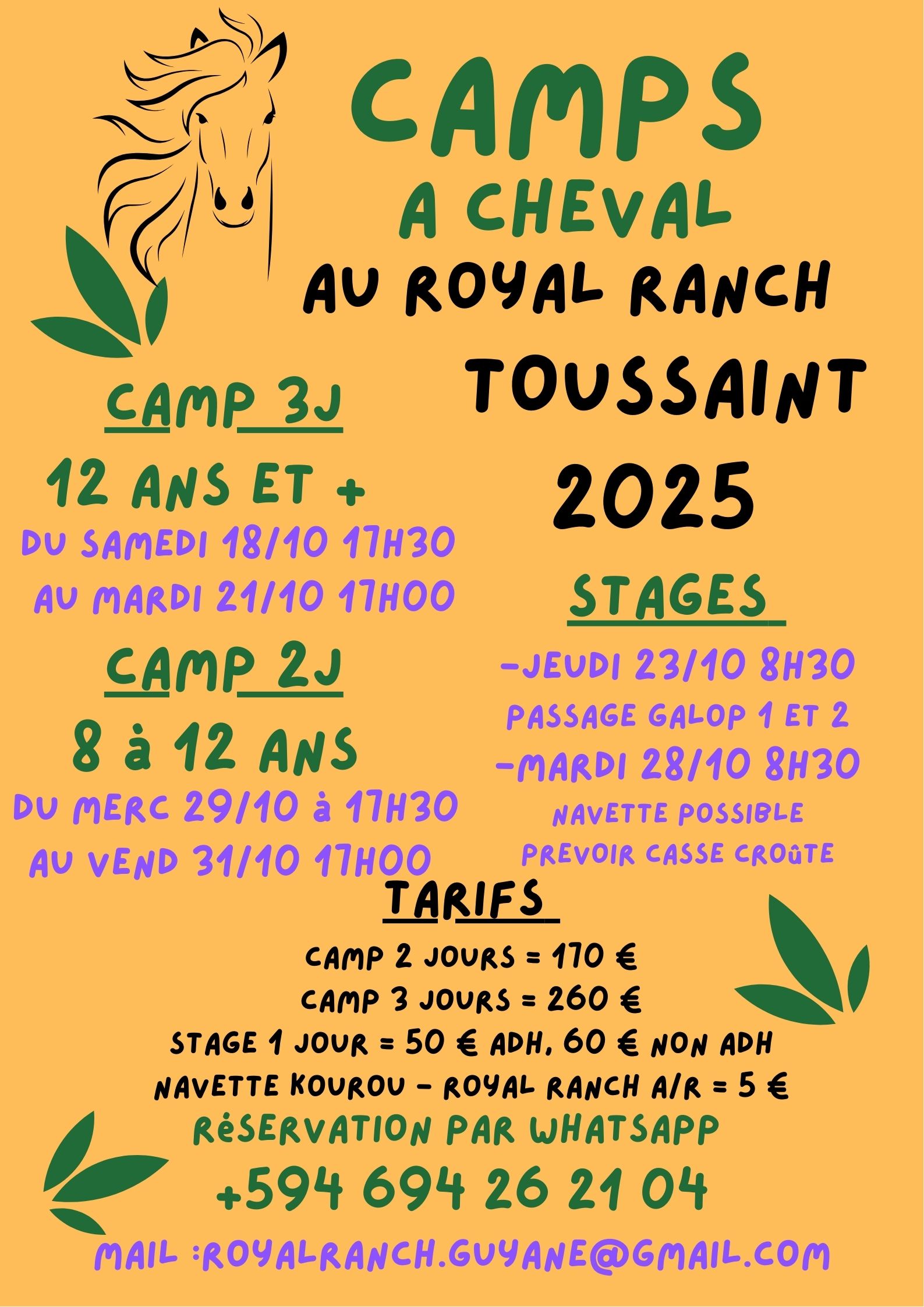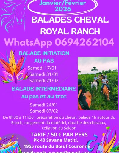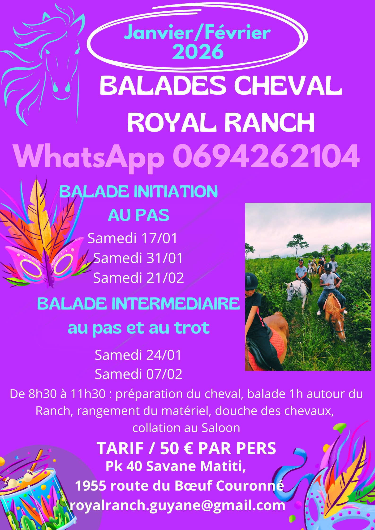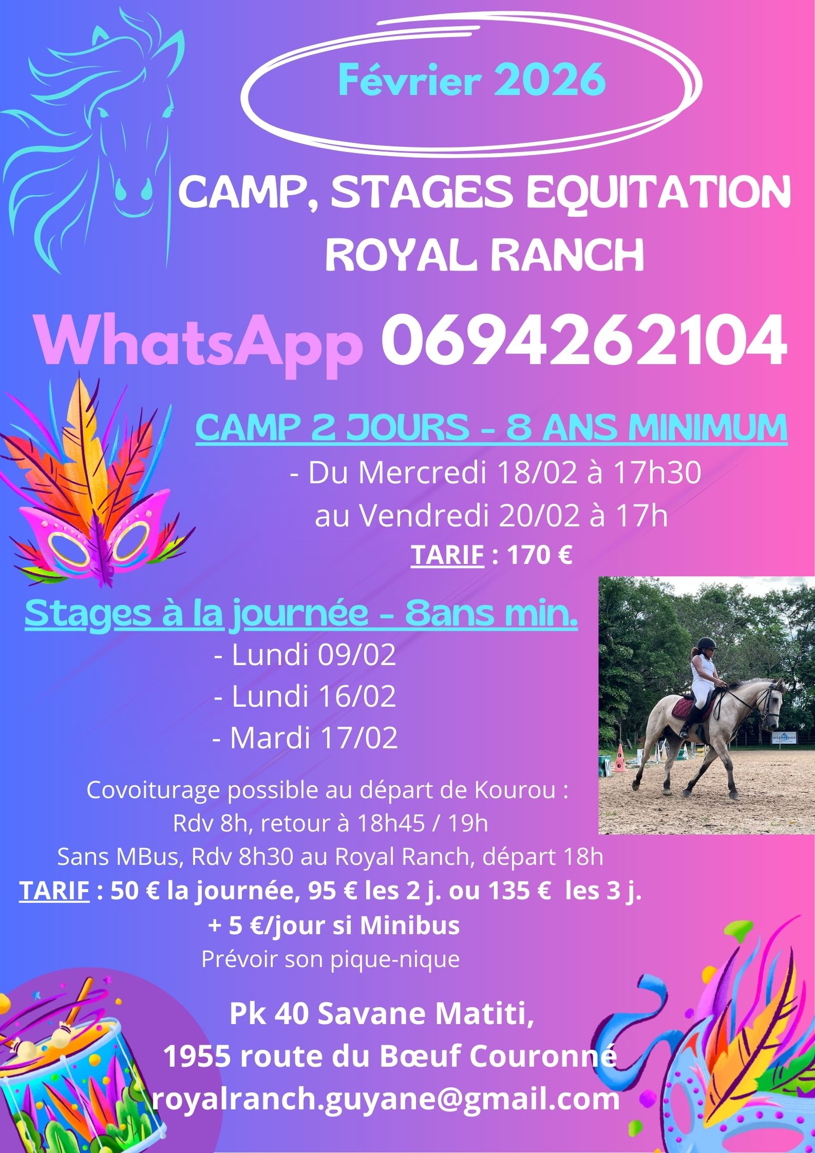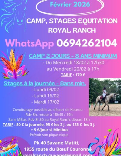 Le Royal Ranch Centre Equestre Matiti, à mi-chemin entre Kourou et Macouria est un Centre Équestre en pleine nature, dans un milieu arboré, campagnard, propice pour le calme et le bien-être des poneys et des chevaux.
